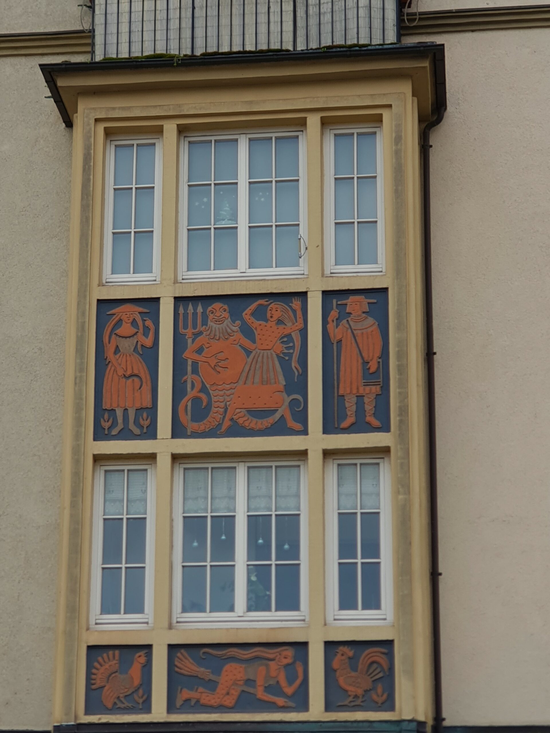 Das große mittlere Feld zeigt den Wassermann der gerade ein Mädchen entführt.